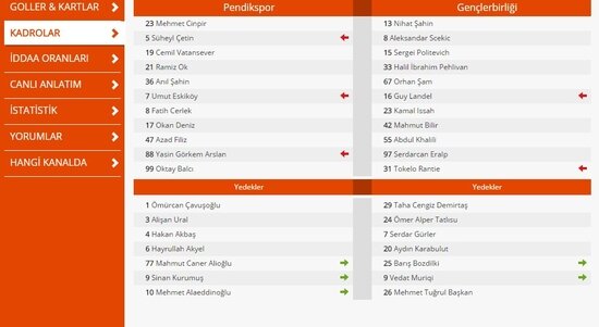 Sarı kartlar: Dk. 66 Scekic, Dk. 90 Serdarcan Eralp (Gençlerbirliği), Dk. 90+2 Oktay Balcı (Pendikspor)