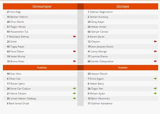 Göztepe, Gosso'nun 44. dakikada kırmızı kart görmesiyle 10 kişi kalırken; Abdülaziz Solmaz, serbest vuruşta Giresunspor'u 1-0 öne geçirdi. Ev sahibinde Vedat Muriqi, 51. dakikada farkı 2'ye çıkaran golü kaydetti. 86. dakikada Dodo penaltıdan takımının son golünü attı. Göztepe'de skoru 90. dakikada Emre Aygün belirledi.