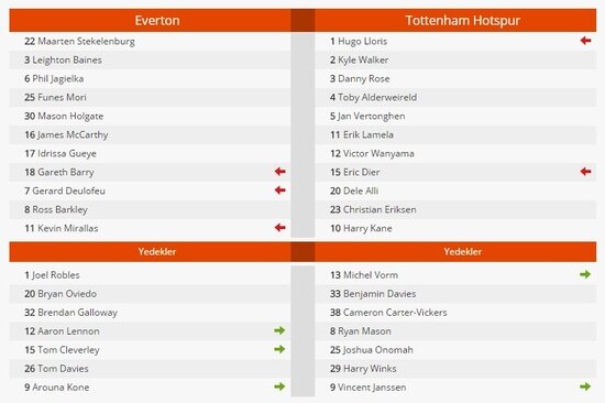 Everton maçın henüz 5. dakikasında Ross Barkley ile öne geçerken, Tottenham'ın cevabı 59. dakikada Erik Lamela'dan geldi.