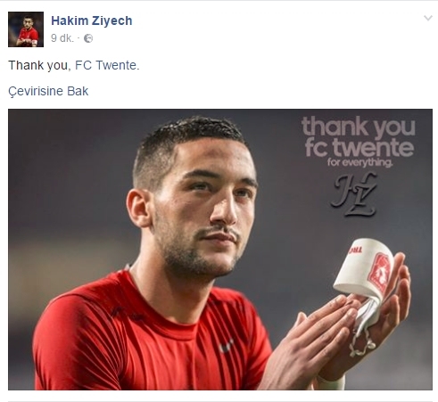 Sparta Rotterdam'a karşı son kez Twente formasını giyen ve gol atan Hakim Ziyech, kendisine ait onaylı facebook hesabında, "Teşekkürler Twente" diyerek vedalaştı.