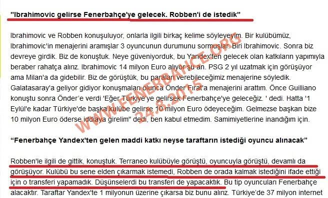 Fenerbahçe, çıkan Arjen Robbben haberlerini daha önce yalanlarken sarı-lacivertli kulübün başkanı Aziz Yıldırım'ın "Robben için teklif yaptık" sözleri gündeme bomba gibi düştü.