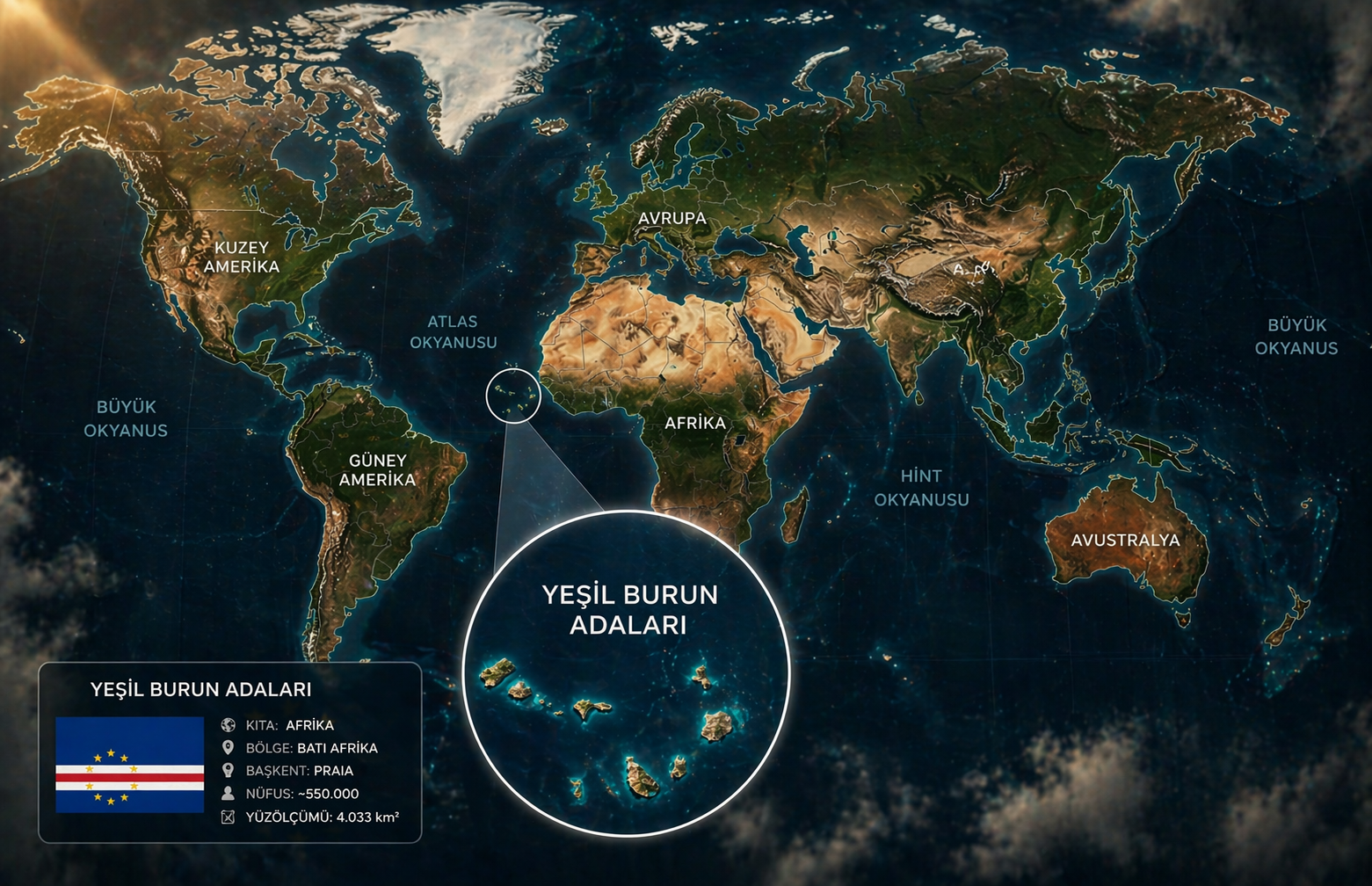 Afrika'nın Atlantik kıyısındaki 10 volkanik adadan oluşan Yeşil Burun Adaları, Afrika elemelerinde dev rakibi Kamerun'u geride bırakarak grubunu lider tamamladı. 13 Ekim 2025'te başkent Praia'da Eswatini'yi 3-0 mağlup eden "Mavi Köpekbalıkları", tarihinin ilk Dünya Kupası biletini cebine koydu.