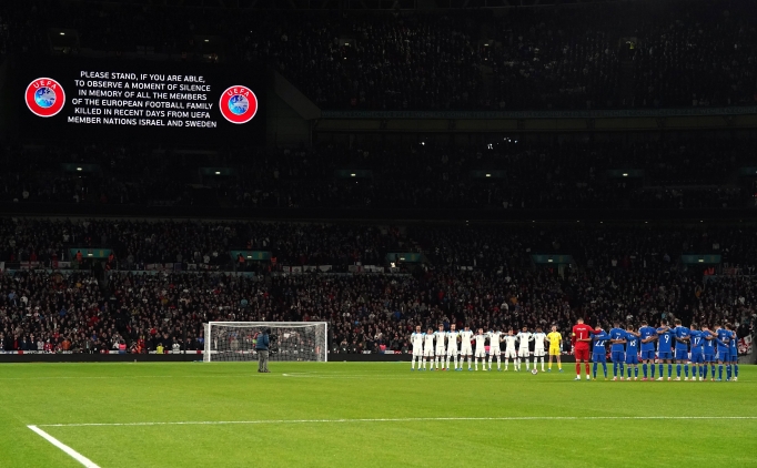 İngiltere ile İtalya arasında Wembley'de oynanan maçta 'Hayatını kaybeden İsveç ve İsrailliler anısına 1 dakikalık saygı duruşu' anonsu sonrası 'Özgür Filistin' tezahüratlarında bulundu.