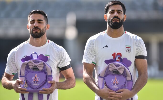 Antalya'da kamp yapan İran Milli Futbol Takımı, Nijerya Milli Takımı ile oynadığı hazırlık maçının seremonisine, savaşta ölen çocuklara dikkati çekmek için çocuk sırt çantalarıyla çıktı.