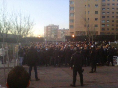 2500 kişilik İtalyan grupla Atletico Madrid taraftarları arasında çıkan çatışmalarda 5'i İtalyan, biri İspanyol olmak üzere toplam 6 kişi yaralandı. Bu arada stat çevresinde İtalyanlar'ın başlattığı ufak çaplı yangınlar da hemen kontrol altına alındı.