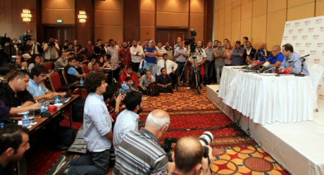 Marriott Otel Asia'da düzenlenen basın toplantısı öncesinde çevik kuvvet tedbir amaçlı güvenlik önlemleri aldı. Bu arada az sayıada Fenerbahçe taraftarı otel önünde toplandı. Türkiye'de son kez basının karşısında çıkan Alex de Souza, birbirinden çarpıcı ifadeler kullandı.