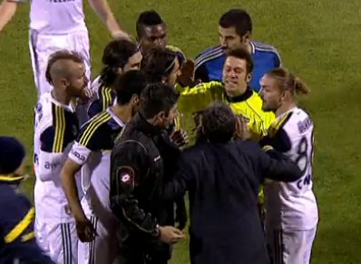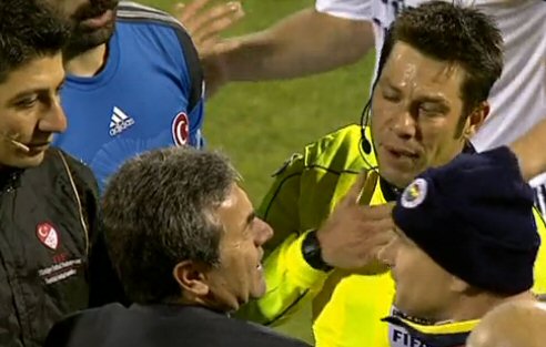 Aydınus tarafından yedek kulübesine geri yollanan Aykut Kocaman'ın Aydınus'a pozisyonun kırmızı kart olmadığını ve haksız bir kart çıkarttığını anlatmak istediği belirlendi. Kocaman'ın isyanı karşısında soğukkanlı durmaya çalışan Aydınus, "Hocam bu maçı ben yönetiyorum, yerinize geçin" dedi.
