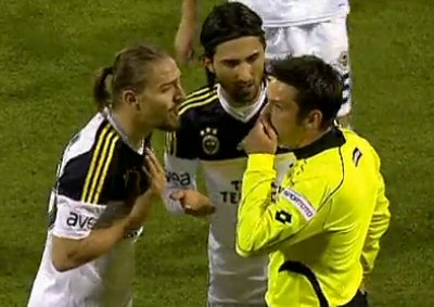 Hakem Fırat Aydınus'un Caner'e gösterdiği kırmızı kartı, dördüncü hakeminden gelen bilgi doğrultusuda değil kendi insiyatini kullanarak verdiği belirtildi.