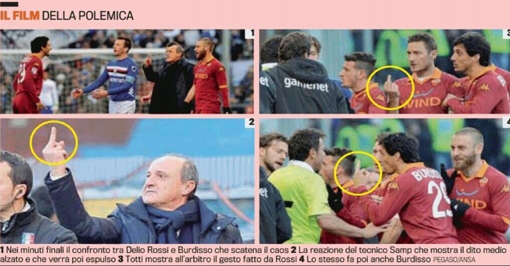 Maçın son dakikalarında bir Romalı oyuncuya orta parmağını göstererek tepki gösteren Rossi maçın ardından yaptığı hareketi yalanlasa da İtalyan medyası görüntülerle tecrübeli çalıştırıcıyı zor durumda bıraktı.