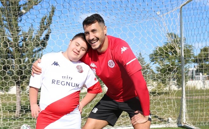Süper Lig ekiplerinden Fraport TAV Antalyaspor'un futbolcusu Adis Jahovic, 3 Aralık Dünya Engelliler Günü'nde down sendromlu minik hayranı Furkan Tez ile bir araya geldi.