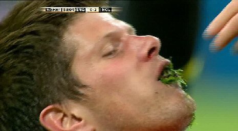 Pozisyon sonrası yerde kalan Huntelaar'ın ağzından çim çıkması da ilginç görüntülere neden oldu
