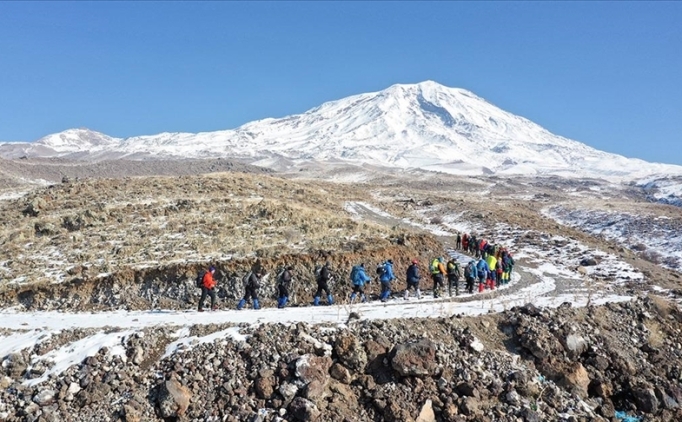 Kışın çetin geçmesi nedeniyle tırmanışların azaldığı Ağrı Dağı'nda, Türkiye Dağcılık Federasyonunca kış faaliyetleri için düzenlenen program kapsamında yurdun birçok bölgesinden dağcılar, Doğubayazıt ilçesine geldi.