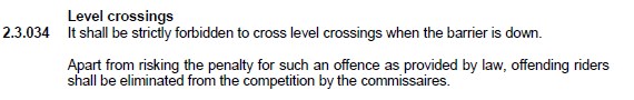 Çünkü mevcut yarış kuralları gereğince, hemzemin geçitlerde bariyerle indirildikten sonra sporcuların karşıya geçiş yapmaları yasak ve cezai yaptırımlar dışında yarıştan diskalife edilmeleri de söz konusu.