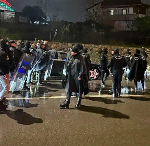 Taraftarlar dağılana kadar bekletilen araç, güvenlik önlemlerinin alınmasının ardından yola devam etti.