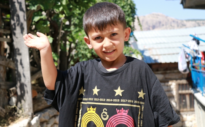 Bir süre sonra tekrar Adem ile buluşan Kocamaz ve arkadaşları, çocuğun yüzünü hediye ettikleri Galatasaray tişörtüyle güldürdü.