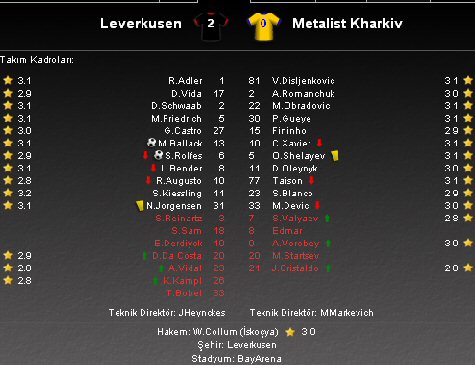 UEFA Kupası 2.tur rövanş karşılaşmasında Bayer Leverkusen, BayArena'da Metalist Kharkiv'i ağırladı.