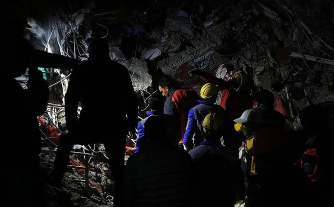Merkez üssü Pazarcık ve Elbistan ilçeleri olan 7,7 ve 7,6 büyüklüğündeki depremlerin ardından Malatya'da yıkılan bir binada arama kurtarma çalışmaları devam etti.