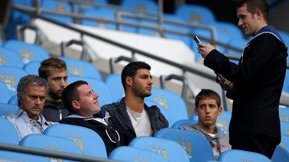 Şampiyonlar Ligi'nde Manchester City ile aynı grupta mücadele edecek olan Real Madrid'de Portekizli teknik adam City'in QPR ile oynadığı maçın başlama vuruşundan 15 dakika önce Etihad Stadı'ndaki tribünlere oturdu. Jose'nin maça tek başına gelmesi dikkatlerden kaçmadı.