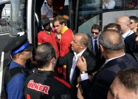 G.SARAY'IN ALAMADIĞI İSİMLER DE LİSTEDE! TIKLAYIN...Meydana gelen arbede sırasında 2 Galatasaray taraftarı gözaltına alındı. Olayın ardından otobüsten inen Galatasaray Teknik Direktörü Fatih Terim ile İngiliz polisi arasında kısa süreli tartışma yaşandı.