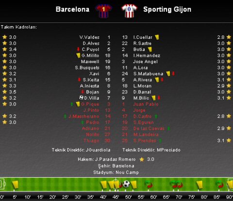 Arjantinli süperstarı Lionel Messi'nin oynamadığı mücalede, Katalanlar 3. galibiyetini elde etti.Bu sonucun ardından Barcelona 9 puana yükselirken; Sporting Gijon ise 4 puanda kaldı.