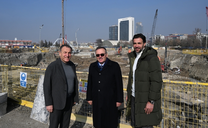 Faruk Koca, MKE Ankaragücü Teknik Direktörü Ömer Erdoğan ve yöneticilerle birlikte stat hakkında inşaat şirketi yetkililerden bilgi aldı.