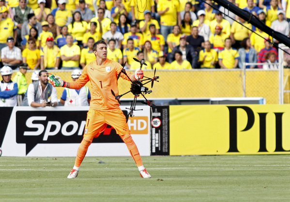 Fernando Muslera, Uruguay Milli Takımı'nın Ekvador ile oynadığı maçta havada uçan drone kamerasını yakaladı. Muslera'nın bu anları sosyal medyada en çok konuşulan olay oldu.