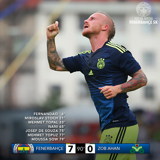 Yeni sezon hazırlıklarını sürdüren Fenerbahçe, İran ekibi Zob Ahan ile hazırlık maçında karşılaştı. Düzce 18 Temmuz Stadı'nda oynanan karşılaşma 7-0 Sarı-lacivertlilerin üstünlüğüyle sonuçlandı.