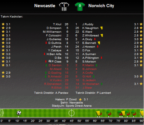 Bu önemli galibiyetin ardından Newcastle United puanını 47'ye yükseltirken; Norwich City 36 puanda kaldı.