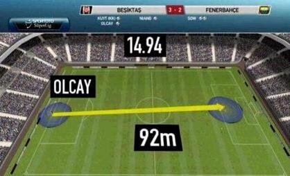 Senegalli forvet Mamadou Niang'ın pasında net bir vuruşla kaleci Volkan Demirel'i mağlup eden Olcay, pozisyon başlangıcında ceza sahasından başladığı deparı golle bitirirken, gurbetçi oyuncunun attığı bu deparın uzunluğunun 92 metre olduğu belirtildi.