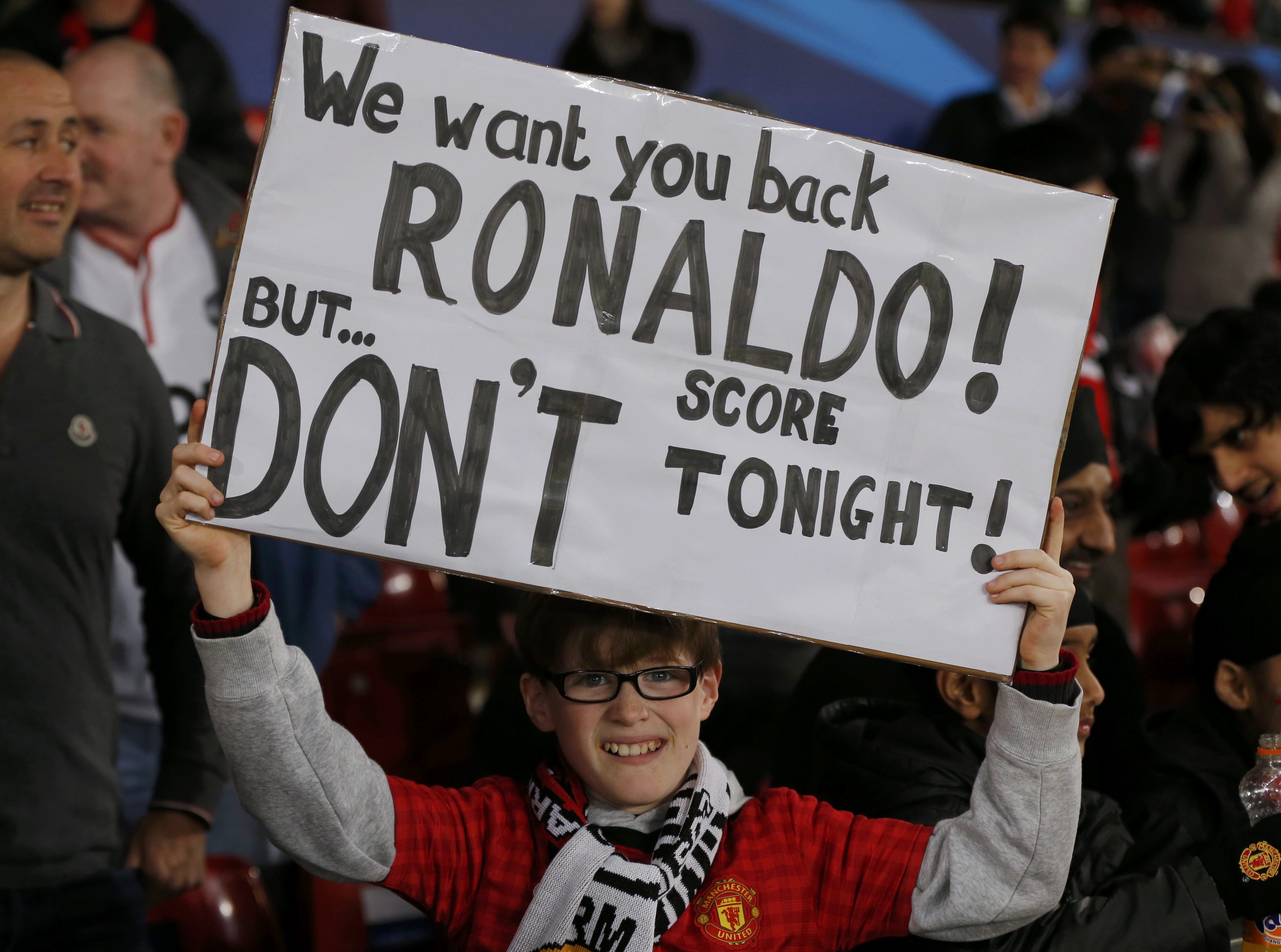 Pankartta Türkçe olarak; "Ronaldo seni geri istiyoruz; ancak bize bu gece gol atma!" yazıldığı görüldü.