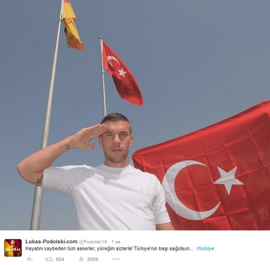 Twitter'da yaklaşık 2,75 milyon takipçisi olan Podolski'nin bu mesajı 7,5 milyon takipçiye sahip olduğu Facebook hesabından da paylaştığı belirtildi.