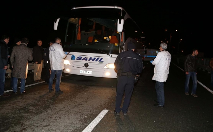 Trabzon Emniyet Müdürlüğü Olay Yeri İnceleme ekipleri, Araklı ilçe girişinde Karadeniz Sahil Yolu'nu ulaşıma kapattıktan sonra 53 DE 618 plakalı otobüste inceleme yaptı.