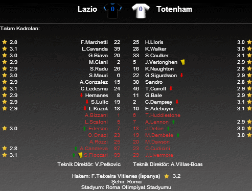 UEFA Avrupa Lİgi J Grubu 5. maçında İtalyan ekibi Lazio, sahasında İngiliz temsilcisi Tottenham Hotspur'u ağırladı.