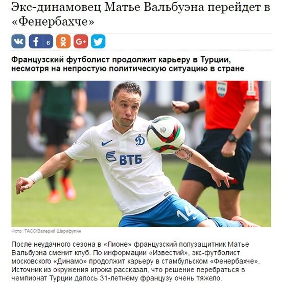 Rus spor sitesi Izvestia'da yer alan haberde bir dönem Dinamo Moskova forması da giyen Valbuena'nın Fenerbahçe ile anlaşmaya vardığı belirtildi. Haberde Fransız futbolcunun kariyerine Türkiye'de devam edeceğini yakın çevresine söylediği bilgisine de yer verildi.