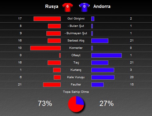 EURO 2012 B Grubu mücadelesinde Rusya, sahasında ağırladığı Andorra'yı 6-0 yendi.