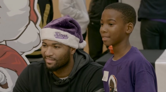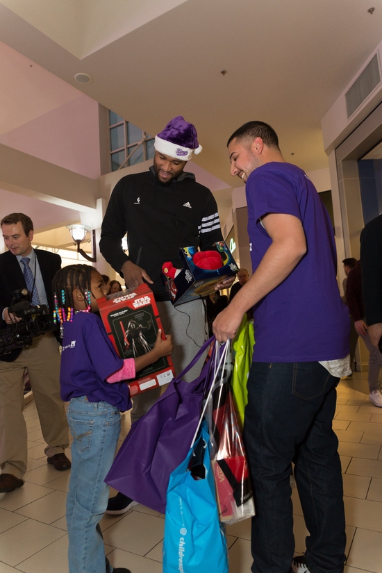 "Santa Cuz" DeMarcus Cousins, Noel alışverişine çıkarak, yardıma muhtaç 100 çocuk ile zamanını hediyelere bakmakla, mor t-shirtleri imzalamakla, selfie çekinmekle geçirdi.