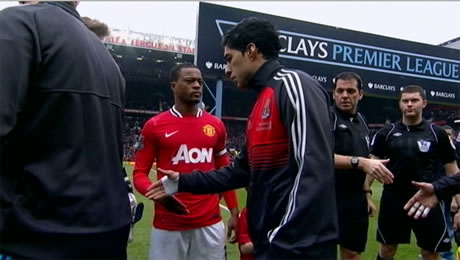 Geçtiğimiz sezon yaşanan 'ırkçılık' kavgasından sonra Liverpoollu Luis Suarez ve Manchester Unitedlı Patrice Evra, ikinci kez biraraya geldi. İkilinin karşı karşıya geldiği ilk karşılaşmada Suarez, kendisini ırkçı olmakla suçlayan Evra'nın elini sıkmamış ve maç soğuk rüzgarlar eşliğinde başlamıştı. Liverpool ile Manchester United'ı Premier Lig'in 5. haftasında karşı karşıya getiren karşılaşma öncesinde kamuoyu ikilinin el sıkışıp sıkışmayacağını merak ediyordu. Suarez'in bir önceki maç öncesi takındığı tavrı eleştiren kaptan Steven Gerrard ve manejer Brendan Rodgers'ın araya girmesi ile Suarez, maç öncesinde Evra'nın elini sıktı ve bir anlamda buzları eritti.