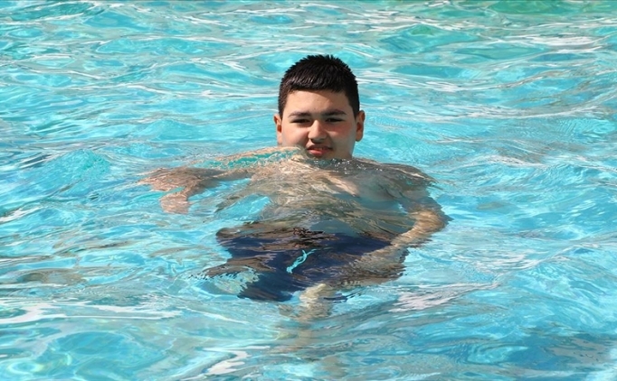 Sudan korkan otizmli Yiğit, şimdi havuzda tek başına kulaç atıyor