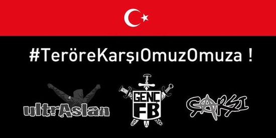 "Üç büyükler" olarak anılan takımların önde gelen taraftar grupları Çarşı, UltrAslan ve Genç Fenerbahçeliler, sosyal medyada yer alan adreslerinde "Teröre karşı omuz omuza" mesajına yer verdi.