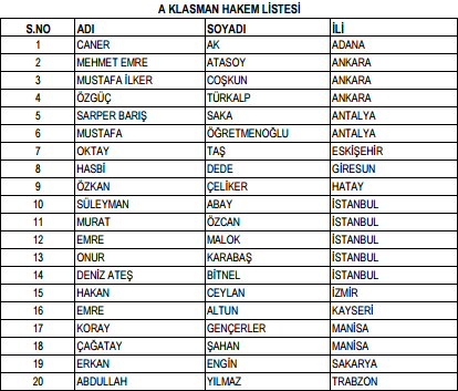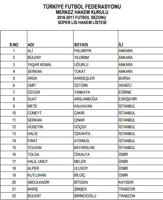 SÜPER LİG YARDIMCI HAKEM LİSTESİ