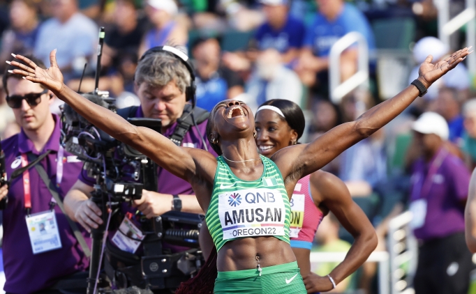 Kadınlar 100 metre engelli yarı final serisinde 12.12'lik derecisiyle dünya rekoru kıran Nijeryalı Tobi Amusan, finalde 12.06 ile altın madalyaya uzandı.