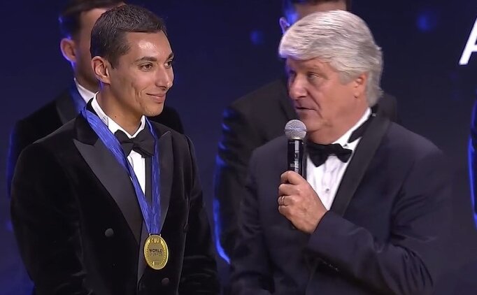 TMF Asbaşkanı Mahmut Nedim Akülke'nin de katıldığı madalya töreninde, 2024 Dünya Superbike şampiyonu milli motosikletçi Toprak Razgatlıoğlu'na madalyasını FIM Başkanı Jorge Viegas, takdim etti.