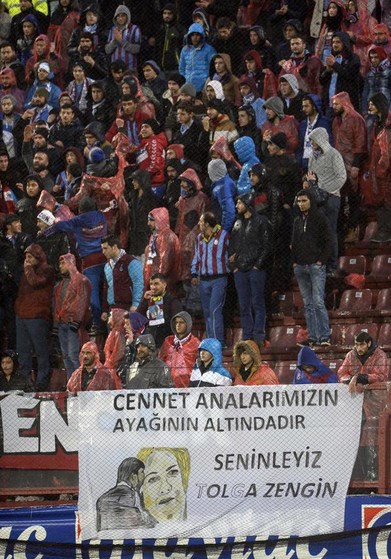 Trabzonspor tribünlerinde açılan söz konusu pankartta "Cennet, analarımızın ayağının altındadır. Seninleyiz Tolga Zengin" metninin yazıldığı görüldü.