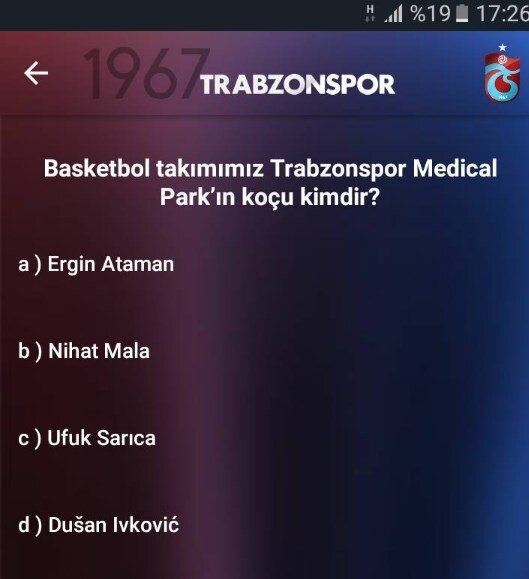 Trabzonspor Kulübü'nün taraftarları için çıkardığı mobil uygulamada, basketbol takımı hakkındaki bir soruda skandala imza atıldı.