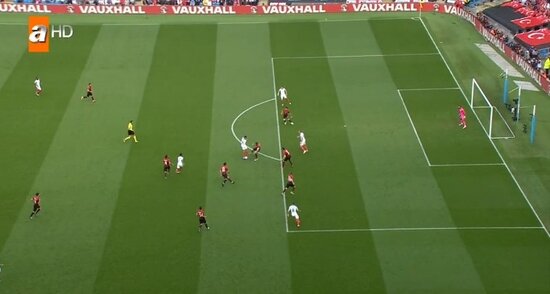 Maçn henüz 3. dakikasında Dele Alli'nin pasında ceza alanı içerisinde topla buluşan Harry Kane vuruşunu yaptı ve topu ağlarımızxa gönderdi. Bu pozisyonda Alli'nin pası verdiği an Kane'nin açık bir şekilde ofsayt olduğu gözlerde kaçmadı.