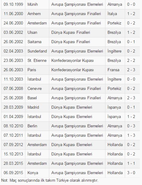 2016 Avrupa Şampiyonası Elemeleri'nde Hollanda'yı 3-0 yenerek grup üçüncülüğüne yerleşen A Milli Futbol Takımı, aynı zamanda 1998'den bu yana ilk kez ''büyük takım'' karşısında galibiyet elde etti.