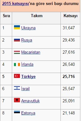 *Bugün play-off oynansa Türkiye seri başı olamıyor. Günümüzdeki üçüncü takımları sıraladığımızda Hırvatistan doğrudan finallere kalırken A Milli takım UEFA katsayı değerlerine göre seri başı olamayan grupta kalıyor. Muhtemel rakipleri arasında Ukrayna, Rusya, Macaristan ve İrlanda gözüküyor. Hem 7-8 Eylül 2015 hem de 8-13 Ekim 2015 tarihleri arasında oynanacak maçların sonuçlarına göre tablo son halini alacak.