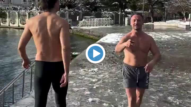 Eski milli basketbolcu İbrahim Kutluay, karlar altındaki İstanbul’da Bebek’ten denize girdi.