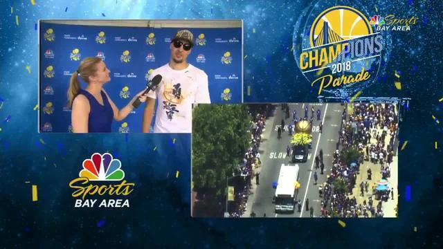 Golden State Warriors guardı Klay Thompson, 2018 şampiyonluk töreni sonrasında "Yoruldum, eve gidip bir sandviç yemek istiyorum" dedi.