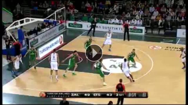 Euroleague Top 16 E grubunda oynanan maçta Zalgiris Kaunas'lı Rimantas Kaukenas'ın Dusko Savanovic'e yaptığı blok geceye damga vurdu.